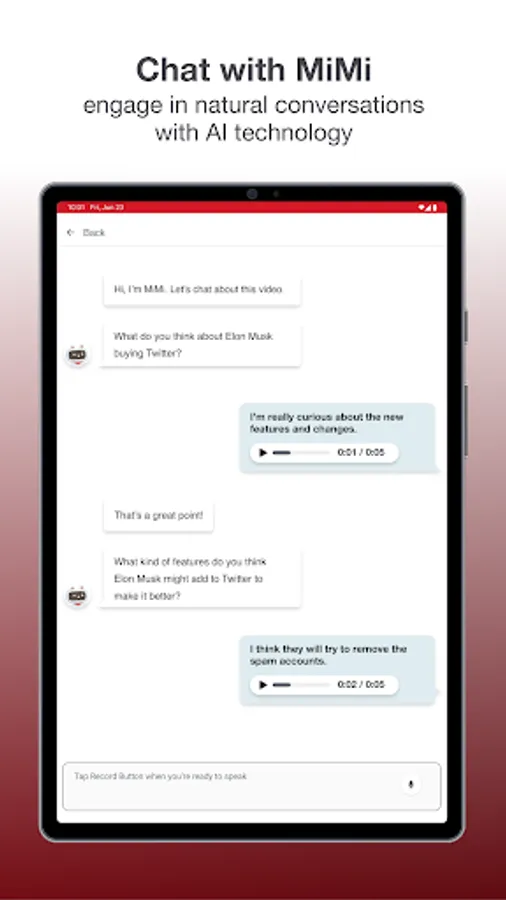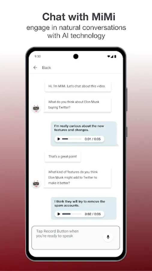 Improve your English vocabulary and have fun with our professional English word memorization feature. Practice speaking English anytime with a personal tutor, or engage in conversation with our virtual language learning assistant, Mimi.