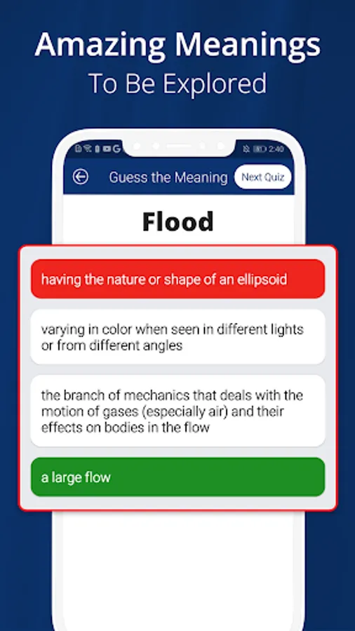Guess the Word – To test your English language learning, this application offers Quiz of the day feature. It is a question and answer based quiz. In quiz of the day, you can test your English where you get a new word everyday and you have to select the correct meaning of the English word. This way you can improve your language learning at a far greater pace without internet.