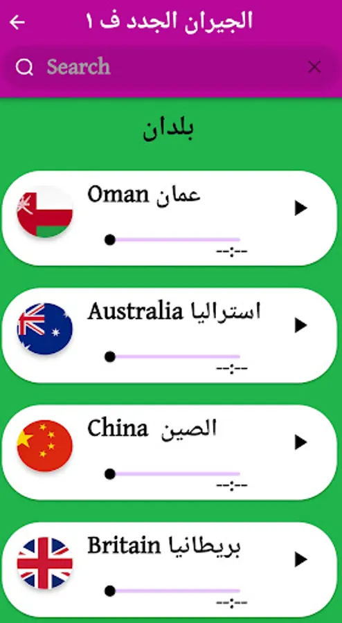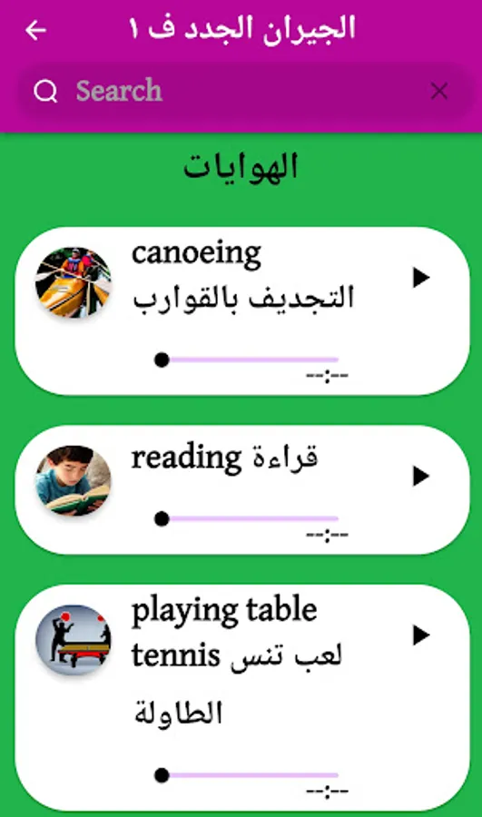 يحتوي التطبيق على جميع المفردات والصوتيات والصور الخاصه بمنهاج الصف الرابع ألاساسي