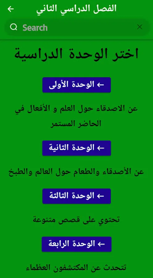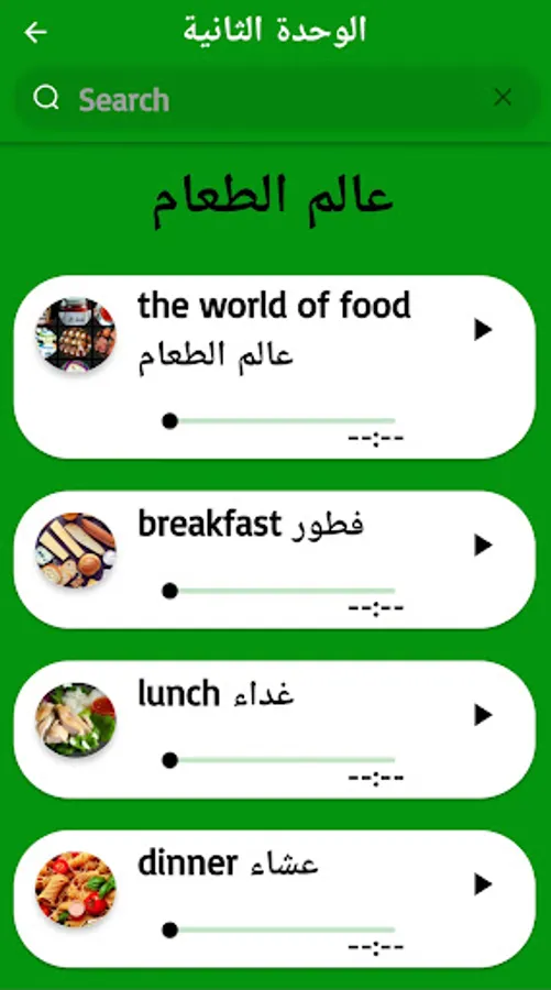 يحتوي التطبيق على جميع المفردات والصوتيات والصور الخاصه بمنهاج الصف السادس ألاساسي