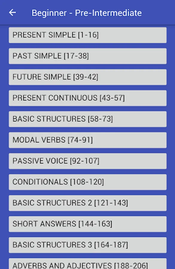 You will not see only tests. You will also see explanations for each test. It will help you to understand your weak points and improve your knowledge greatly. It's for all levels - Beginner, Elementary, Pre-Intermediate, Intermediate, Upper-Intermediate, Advanced. You will learn English grammar step by step (from simple topics to more difficult ones).