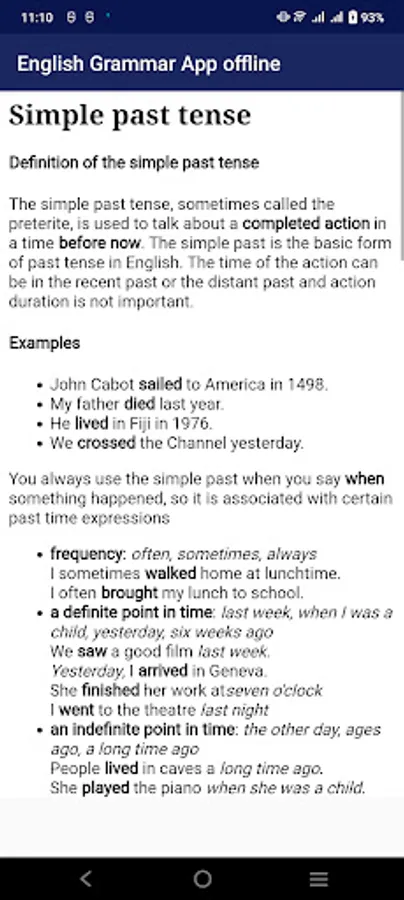 Designed with learners in mind, this app is the best way to learn English grammar. With its intuitive interface and user-friendly navigation, you can easily navigate through the app and access the information you need. Discover a variety of grammar topics, including parts of speech, sentence structures, verb tenses, and more. Our comprehensive approach ensures that you gain a solid foundation in grammar, paving the way for advanced learning.