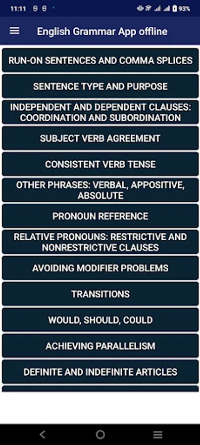 Are you searching for a reliable English grammar resource? Look no further than our app, which serves as your ultimate grammar handbook. From A-Z English grammar to complete grammar rules, this app provides a comprehensive guide to all aspects of English grammar. You'll have quick access to explanations, examples, and usage tips, making it an invaluable tool for learners of all levels.