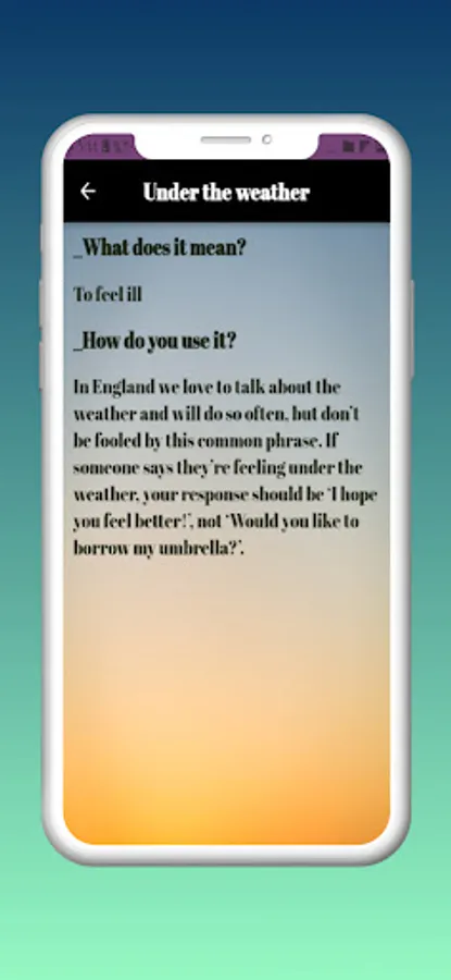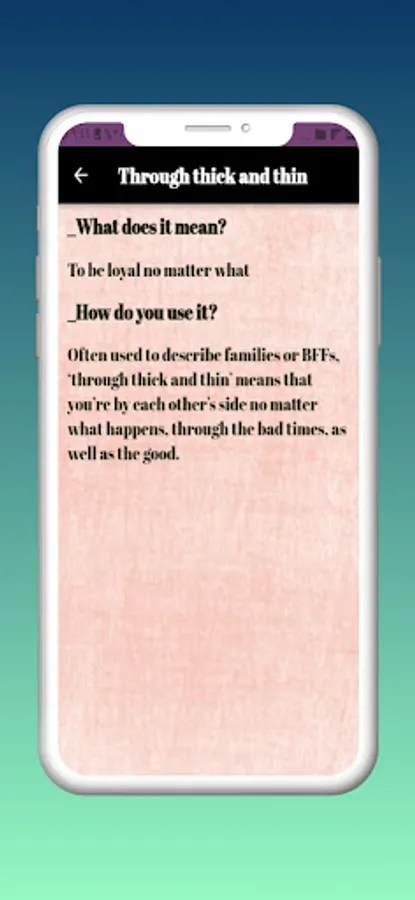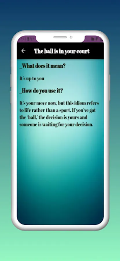 Download our application English idioms now on your phone to enjoy all this information and more with an online update without the need to update your application first!