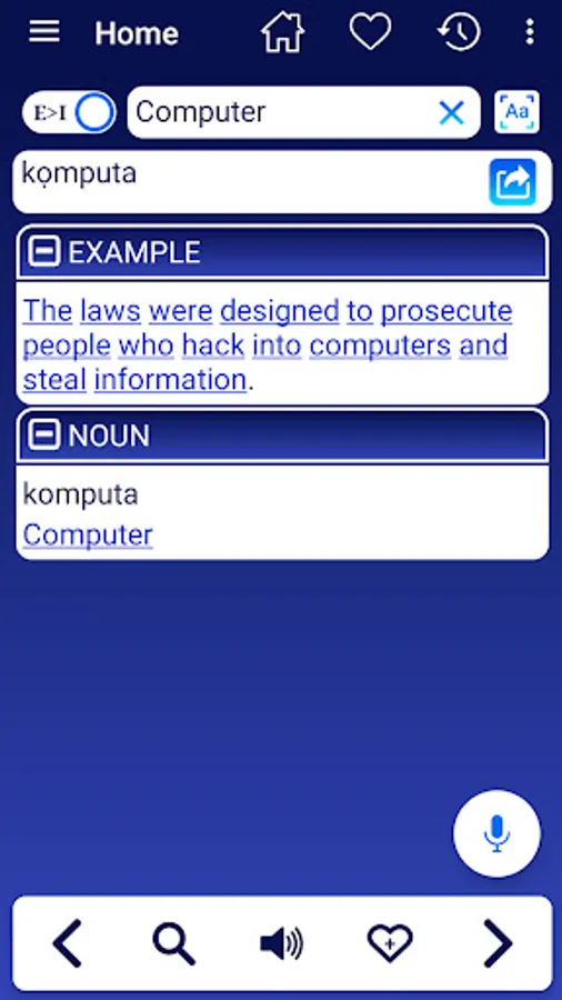 This Igbo Dictionary has the facility of searching both from English to Igbo and Igbo to English and English to English meaning with example. Relevant and important words are listed and synced with the search that gives the advantage of a wordbook of Igbo and English.