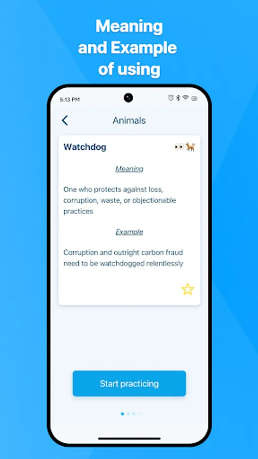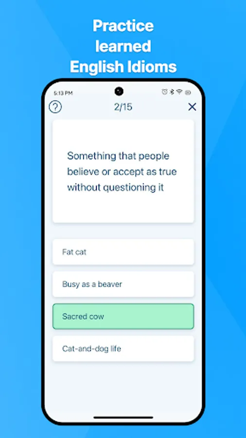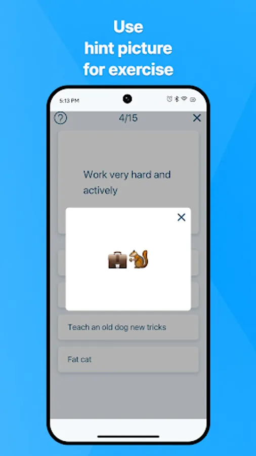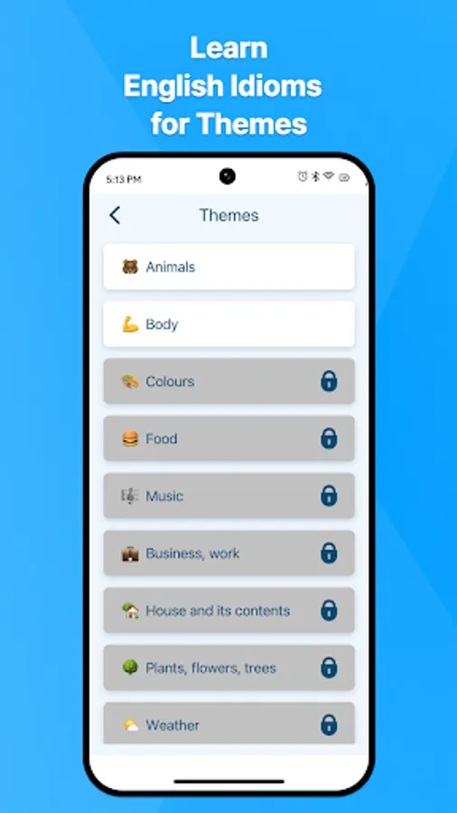 Our app contains a large collection of English idioms, along with their meanings and examples of how they are used. We also have a number of practical exercises to help you learn and remember new idioms.
