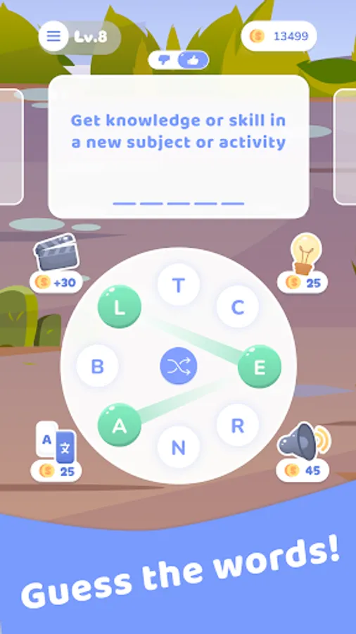 Wordscapes: Word Connect is a fun and exciting way of mastering your English skills. By connecting letters, you piece together words to solve the word game. The challenge of English Wordscapes lies in finding these words given only a partial description and set of letters, which you need to connect with your word knowledge!