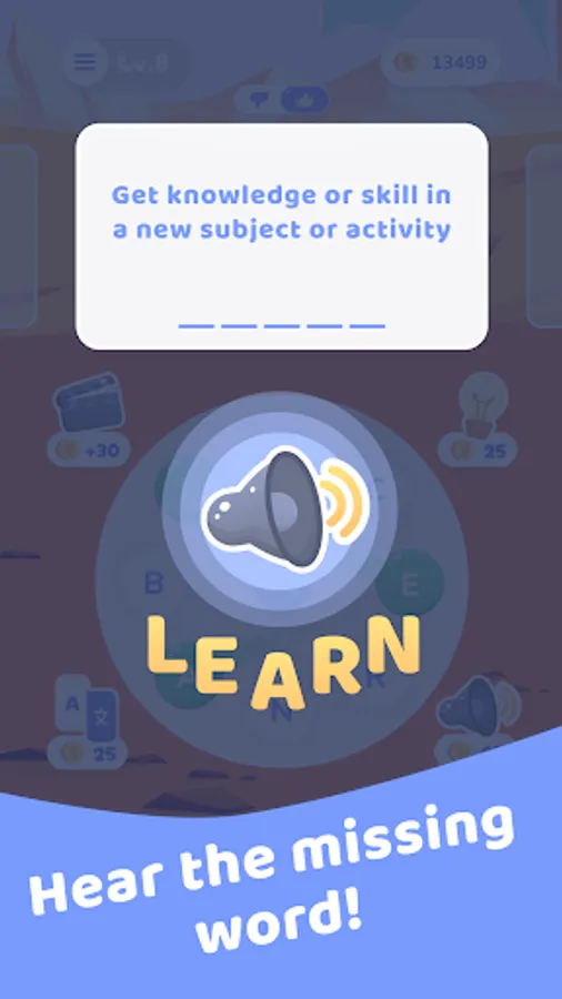 The goal of the Wordscapes: Word Connect is to find words, knowing only an English definition. You can also use hints to get first letters, hear the hidden English word, and translate the word definition in 6 languages (Spanish, Russian, German, Portuguese, Polish, and Turkish). Hints are obtained for coins as you find more and more words in connections game. The longer the word, the more coins you earn for it.