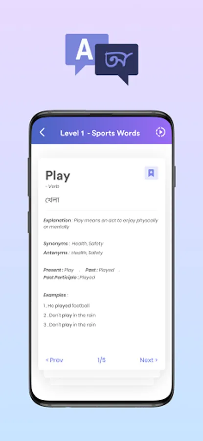The Words or Bangla Dictionary section of the app is designed to help learners improve their vocabulary. The words are divided into several categories, and learners can practice each category as they wish. The app provides the meaning of the words in Bangla, as well as the pronunciation and usage in English. This section is especially useful for learners who want to build their vocabulary in specific areas, such as business, technology, or travel.