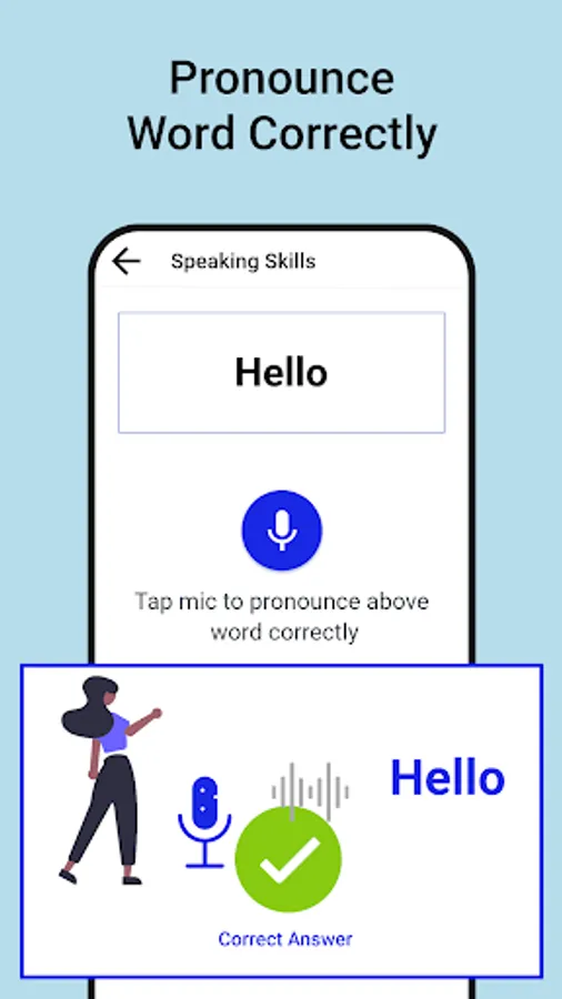 Another much needed feature “Speaking Skills” is part of this English voice keyboard application. Every time you open this feature you get a new word. All you need to press mic and speak the word correctly to check your pronunciation skills. You can practice it as many times as you want to increase your pronunciation skill.