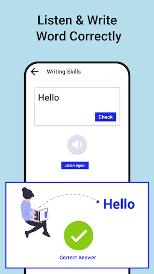 In this voice keyboard we have something special for you that can increase your writing skills. Just listen the word properly and then type it correctly to check your writing skills. Using this feature constantly makes you perfect in writing.