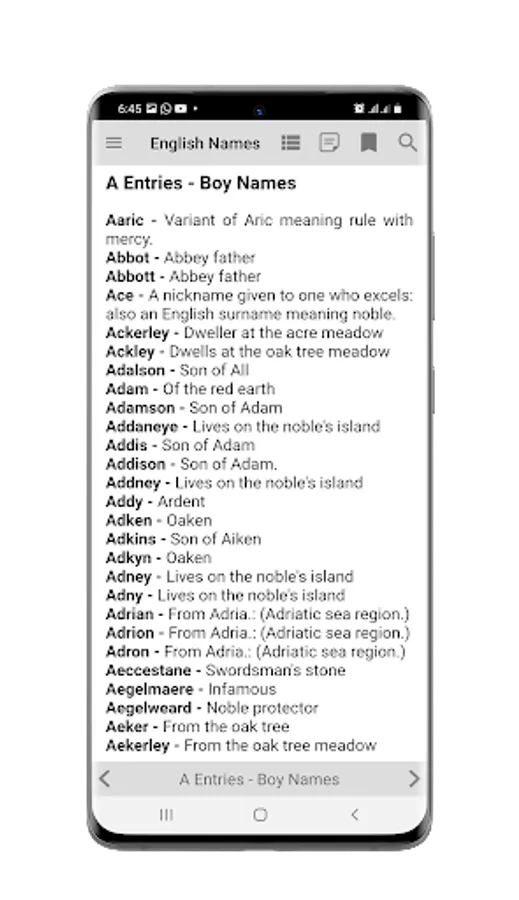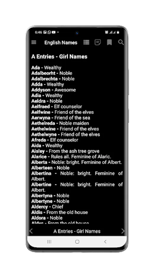 This app provide you A-Z List of English Boy and Girl Names, together with their meanings. These English Names are intended to help you with different aspects of study and would certainly be helpful when making decisions about English baby names for boys and girls.