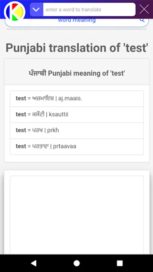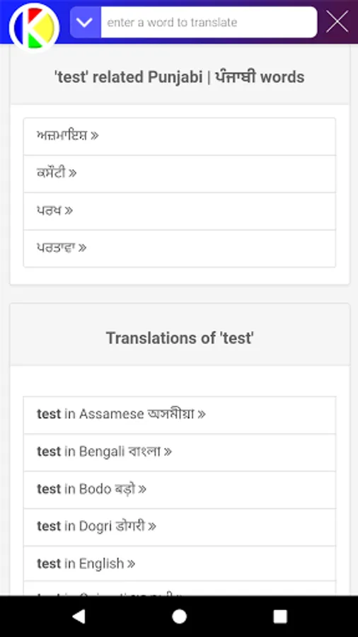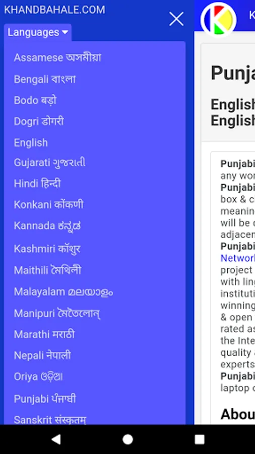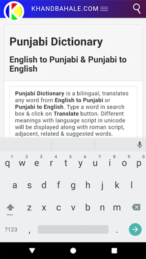 English to Punjabi Dictionary is an Android App that includes an extensive vocabulary of 1,00,000+ words along with translated Punjabi meanings. more at https://www.khandbahale.com/punjabi