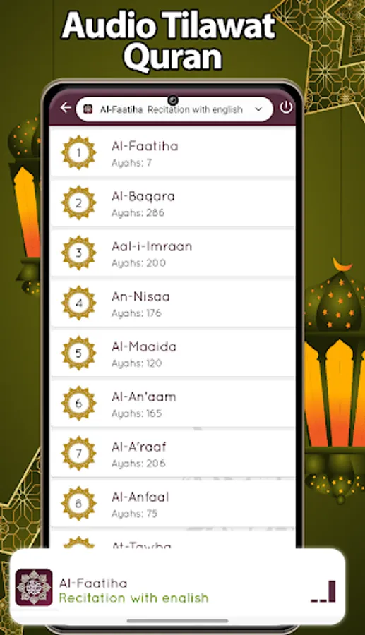Play Quran mp3 app offers 1000+ reciters. You can listen Quran majeed by choosing your favorite reciter. Recite Holly Quran is good hobby. You can recite Holly Quran by using this free Al Quran Kareem app.