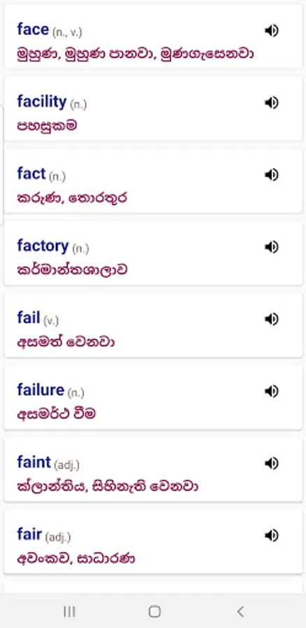 English to Sinhala 3000 Words app includes more than 3000 essential English words. And thereby English to Sinhala 3000 Words app will help you to improve your vocabulary. Having a good English vocabulary aids a lot to find a way to express yourself in English.