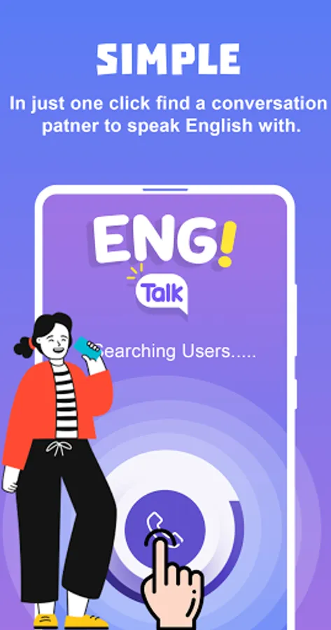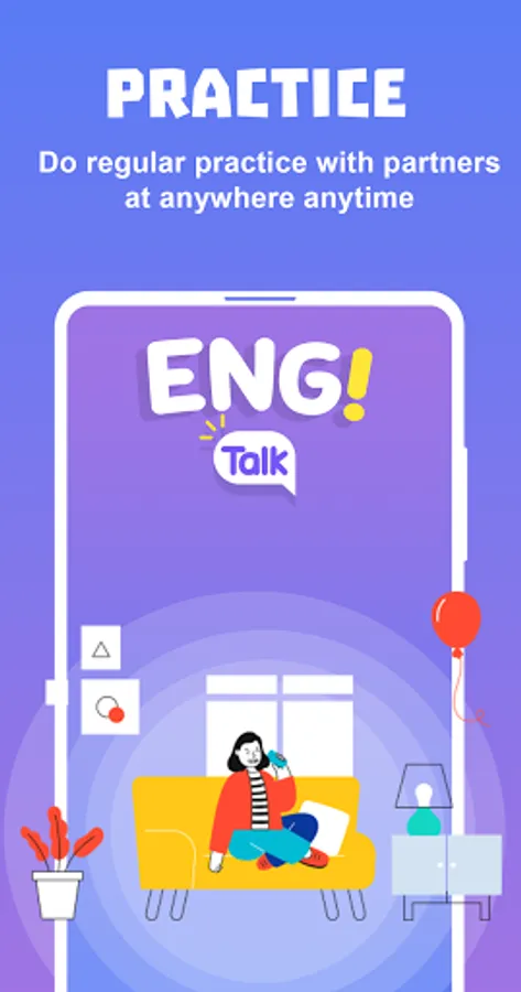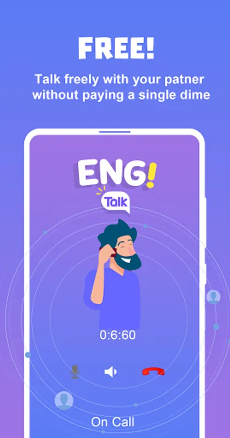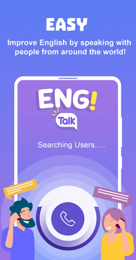 The best way to improve English is to practice spoken English in conversations. In English Talk, with just one click you can talk English anytime, anywhere and thereby improve English speaking and English listening. You will be matched with an online English conversation partner, to have a 1-on-1 call, to have a English conversation in no time!