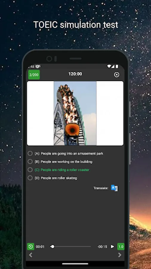 This app is provide you a huge number of practices with full of listening and reading skills like Picture Description, Questions & Responses, Short Conversations and Short Talks, Incomplete sentence, Incomplete text, Reading comprehension.