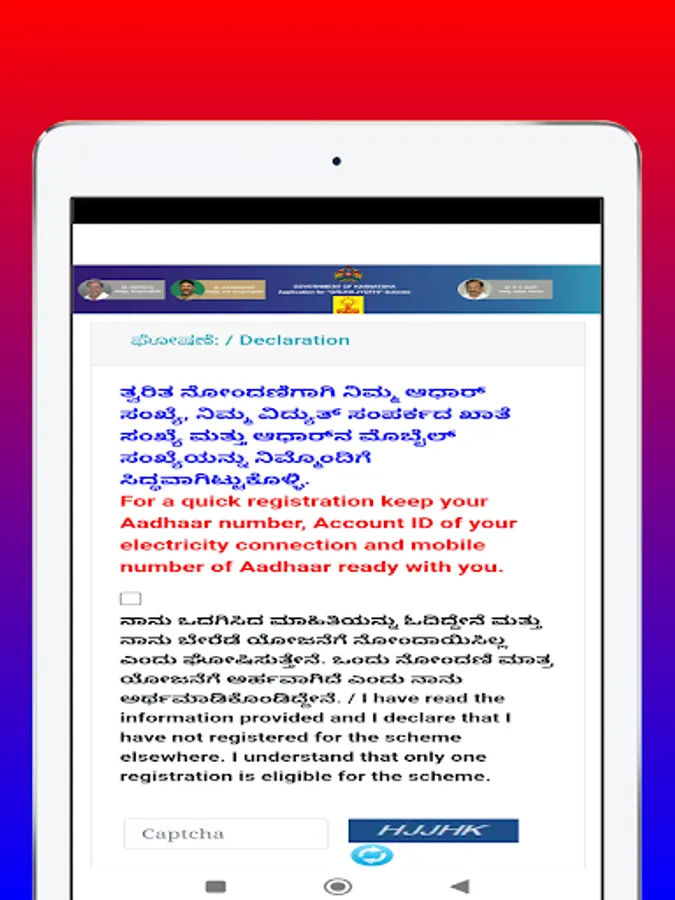 Gruha Jyoti Scheme application form