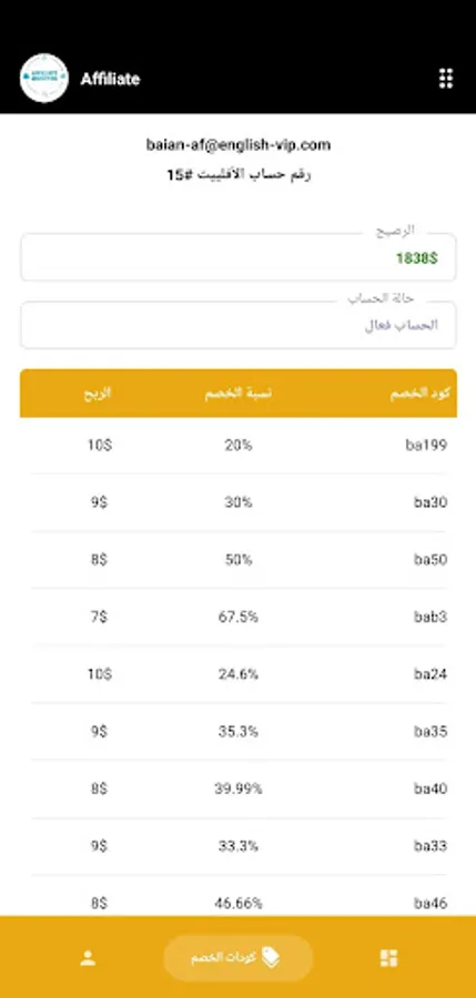 This app is used by affiliate users for internal marketing employees to track their sales monthly.