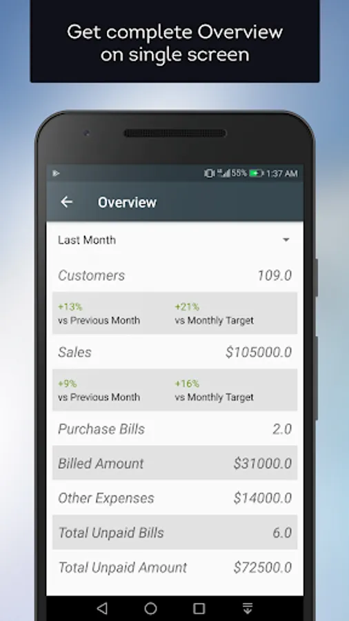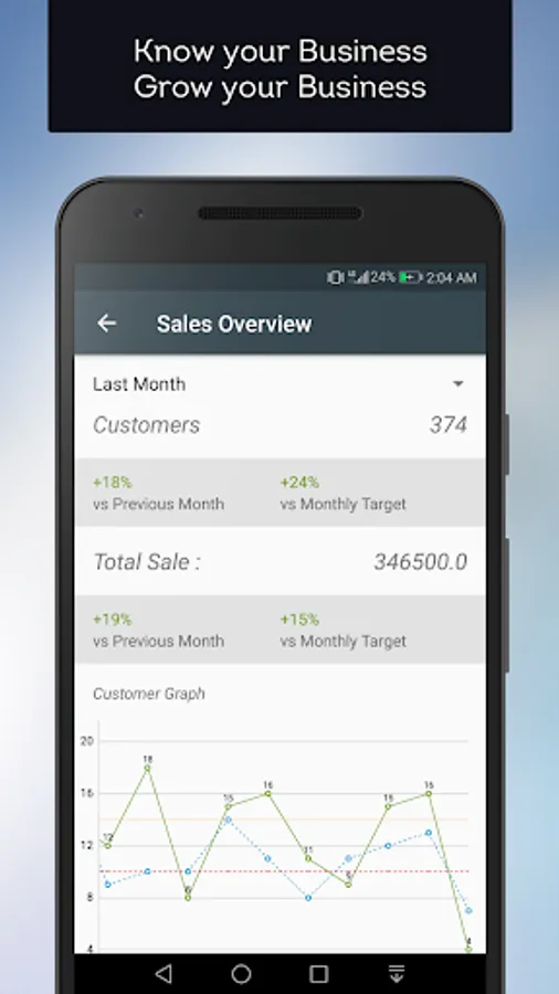 Detailed statistics with graphs will show the comparison of current sales with past sales & target, so you can easily analyse your growth.