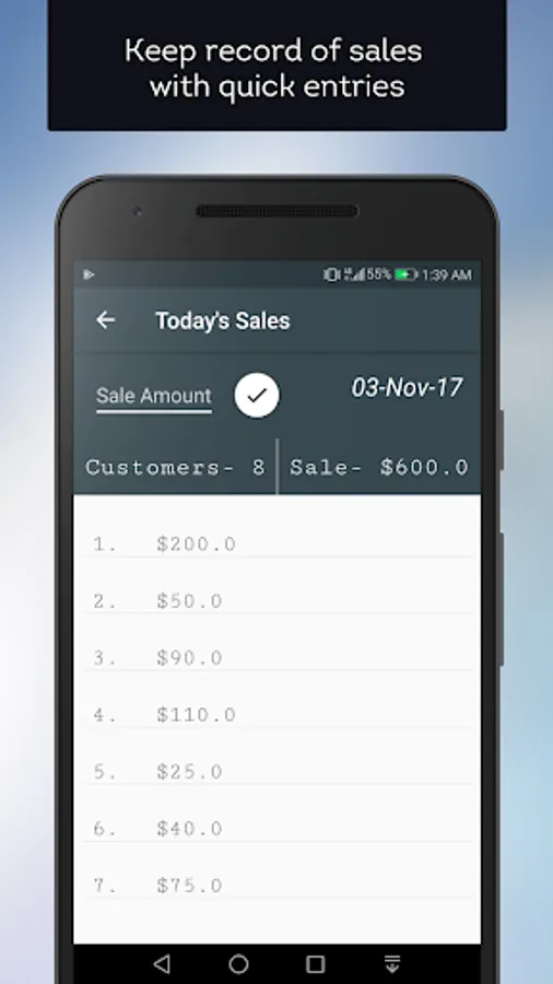 Just enter the sale amount for each sale & Munafa will provide you a complete Sale overview - daily, weekly, monthly & yearly.