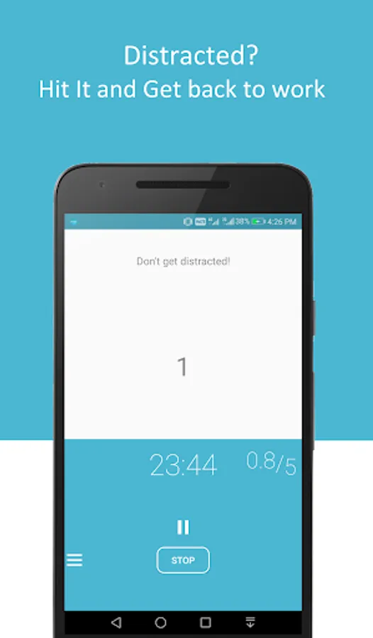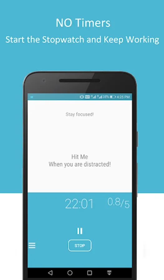 Work with focus, for as long as you can. Its 'Hit if distracted' method helps you to stay focused. Every time you get distracted, hit on the screen, doing this will enhance your focus at task.