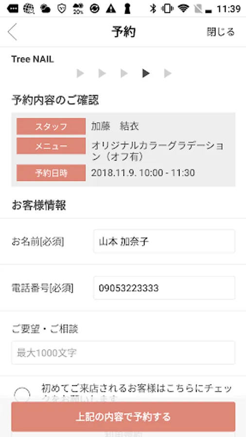 ⋄2⋄ Menu selection for nail salon reservation is possible