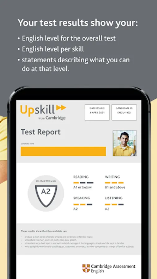 • Global standard: Prove your English against the international standard – the CEFR. Upskill covers CEFR Levels A1-B1.