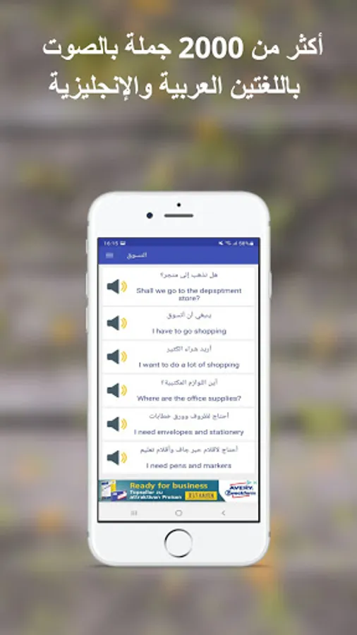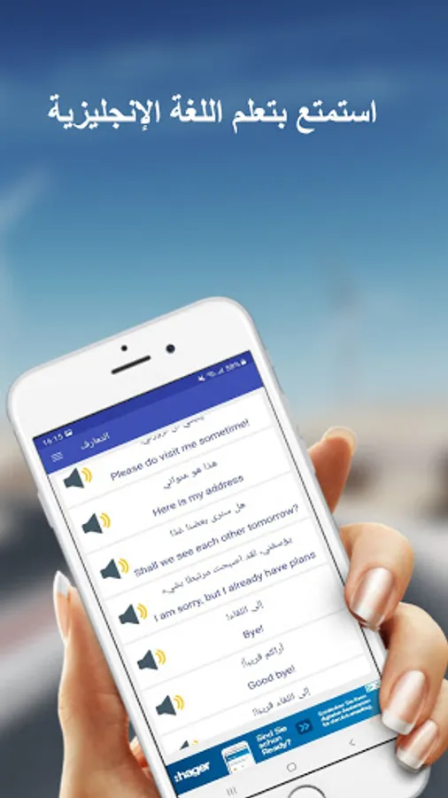 The application contains the most important words and sentences in the English language translated into Arabic with the way they are pronounced by sound and image