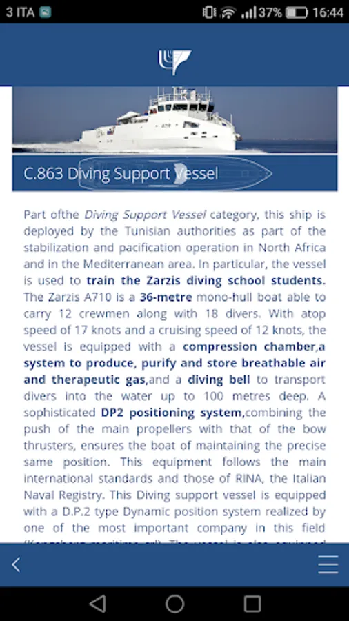 This app will give you an overview of the shipyard, with its history, ship list and maintenance tasks (requires a Vittoria Maintenance account to work). The app also shows the current weather forecast at the shipyard.