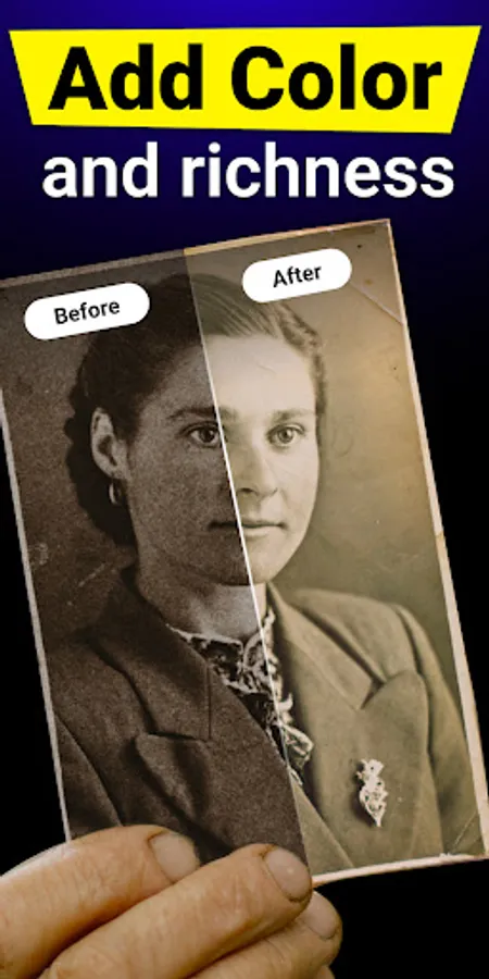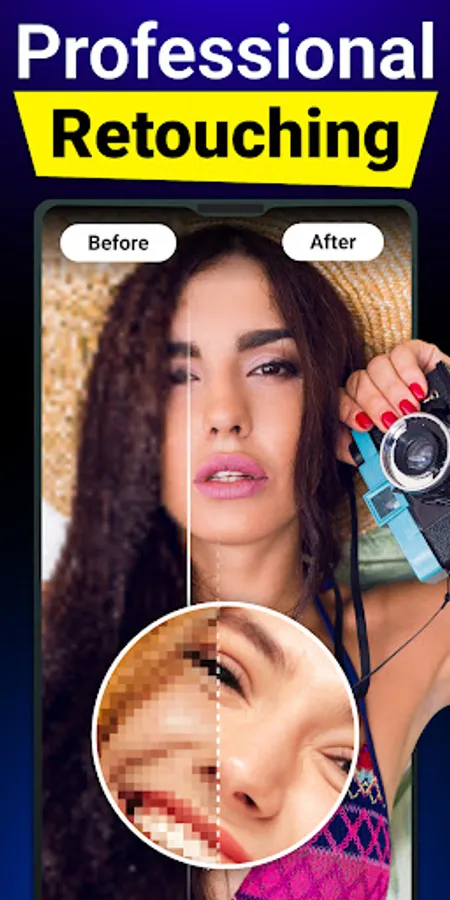 This photo clear app can enhance pixelated, blurred, or old photos to better quality. Restore old photos into high definition and one-tap beauty your face like real magic. Colorize and improve old pics,and create cartoon pictures of your selfie AI photo enhancer!