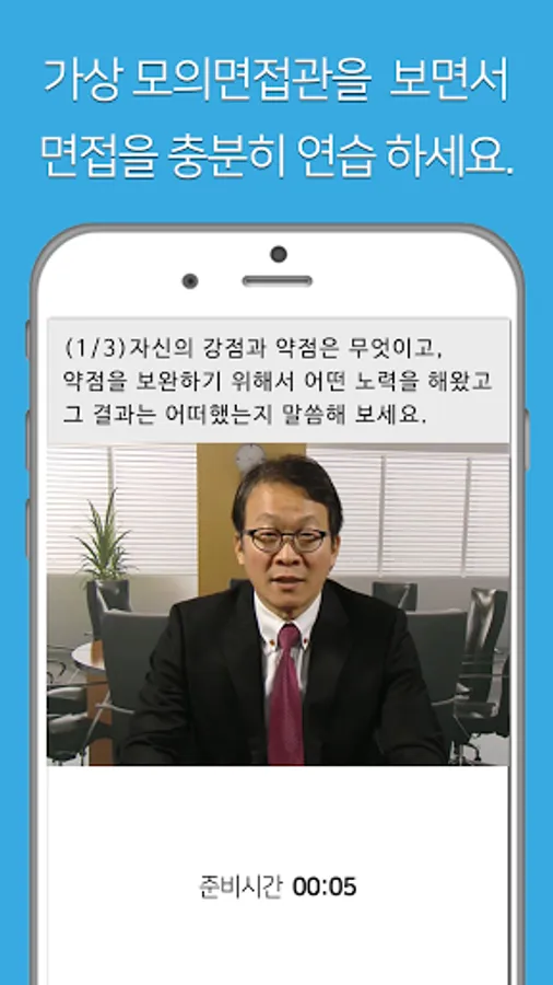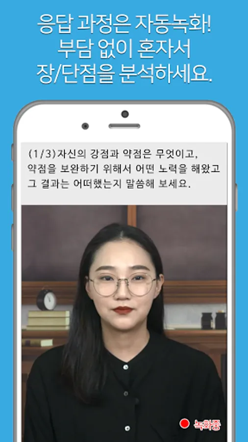 - When the user selects the interview type and interview question, the virtual interviewer asks questions like a real interview, and the responses are automatically recorded through the smartphone.