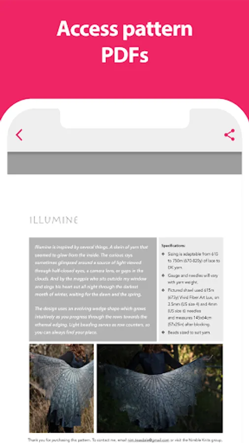 Find out which yarns you’ll need for a project. Check what yardage you need. Look in your stash to see if you’ve already got a yarn, or one that’s similar. And because Ravit is designed to work nicely on your phone or tablet with readable text and buttons you can tap, you won't be squinting as you find all the info you need when you're at your LYS.