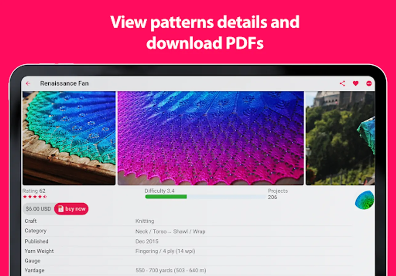 If you’re not sure what you’d like to make next, Ravit lets you easily browse patterns, favorite them, download and view pattern PDFs, view project photos and browse a designer’s other patterns and pattern suggestions.