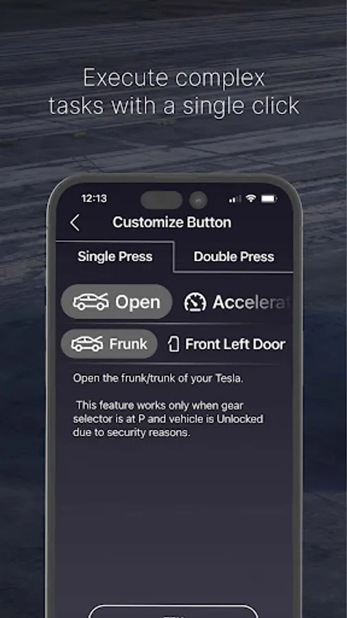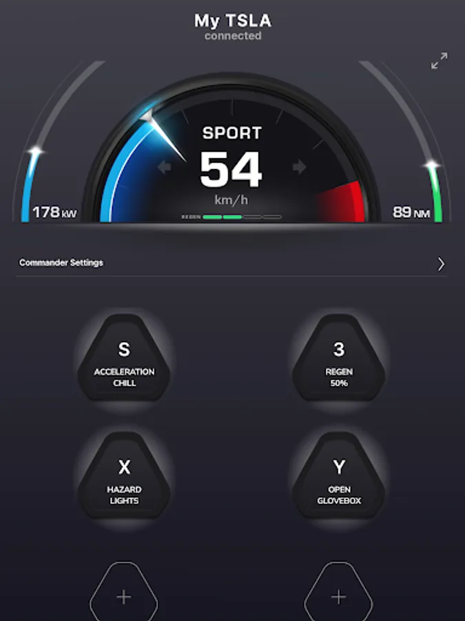 With this app, you can configure your S3XY Buttons for the functions you use daily in your Tesla, combined with an intelligent Dashboard showing you vital information about your EV.