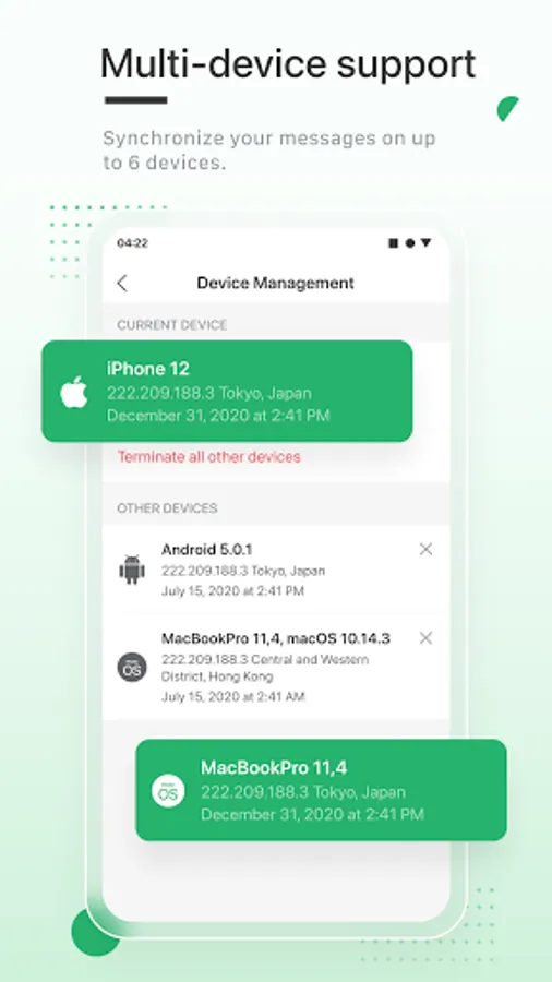 SECURE: Direct message, group message and the file you send will be End-to-End encrypted by default, there are only encrypted messages on our server, and keys will remain on your device, only your chat participants can see the messages. Our encryption is based on 256-bit symmetric AES encryption, 2048-bit RSA encryption, and Diffie–Hellman secure key exchange.