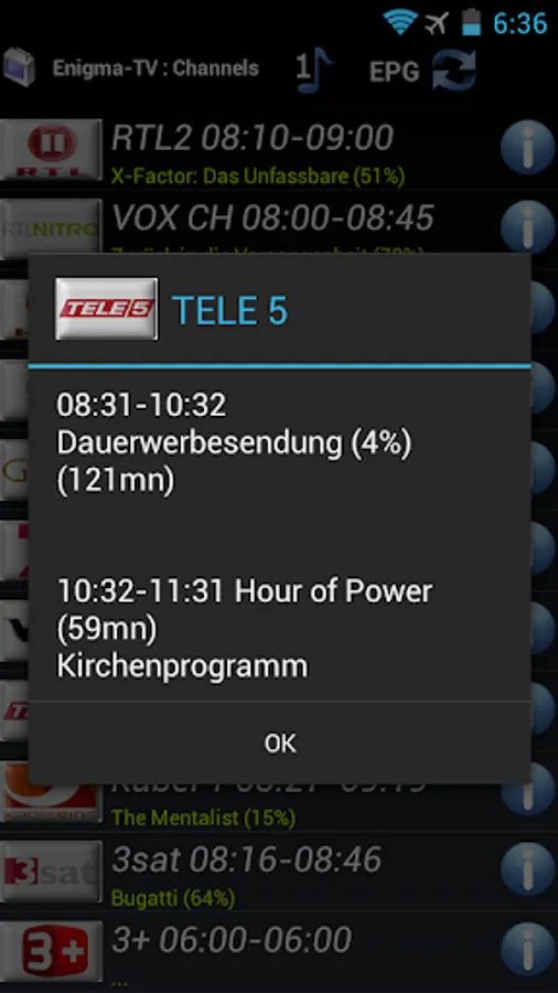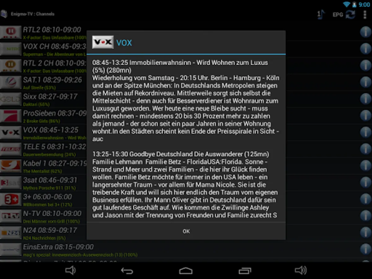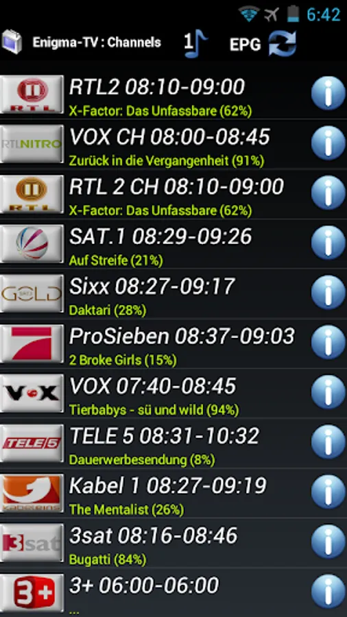 Enigma-TV for Android is a mediaplayer dedicated to Enigma-TV Server.