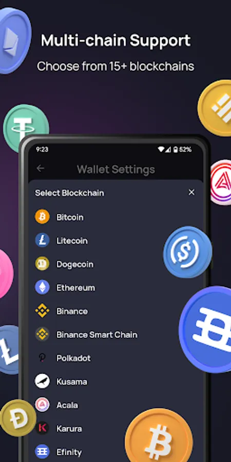 Create, import, use, and track an infinite number of crypto wallets—all in a streamlined, easy-to-use app. Create wallets for BTC, LTC, ETH (ERC-20 tokens), ENJ, DOGE, BSC, DOT, KSM, MATIC, ACA, EFI and KAR tokens.