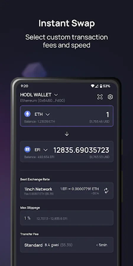 ✅ Import & Swap: Import from all major blockchain wallets such as Trust and Coinbase in a few easy steps, & swap 100+ tokens.