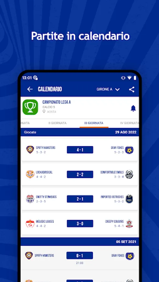 Aosta Calcio 511 is the App to experience the championships: by registering you can follow your tournaments and you will always be updated on results and standings.