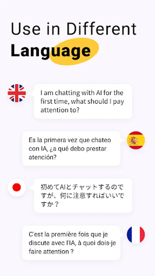 - This application is not associated with any third-party, other applications, or companies, nor is it allowed to do so. It only offers a mobile platform to communicate with AI Chat.