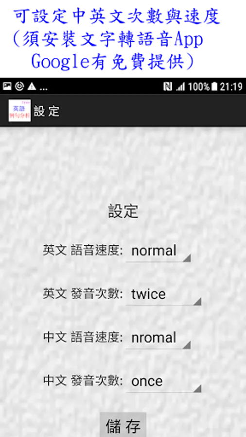 13.中英文發音可在設定速度改變慢、一般、快或發音次數。