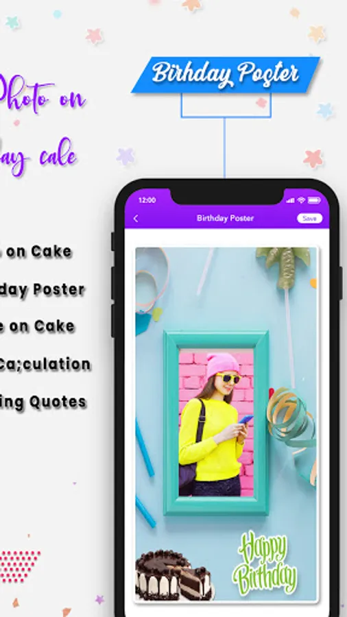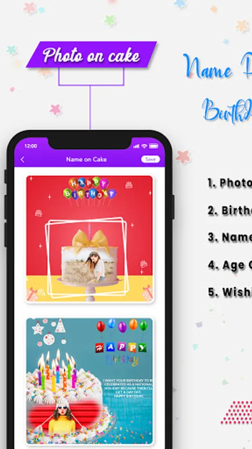 Photo On cake app is contain Birthday poster to wish any friends and your love one with decorate birthday poster with using name photo birthday. Moreover you can adjust text and sticker.