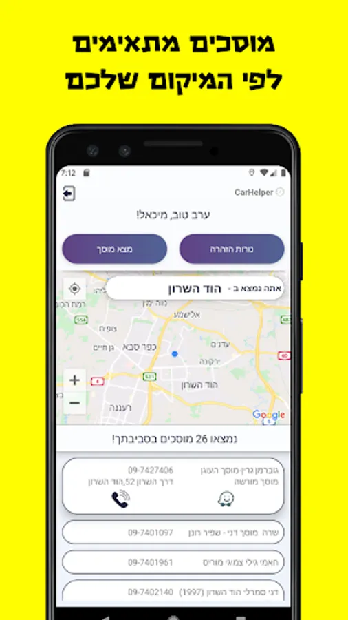 In addition, with your approval, the app will know where you are and present you a garage closest to you, with a phone and address, so you can easily call or navigate.