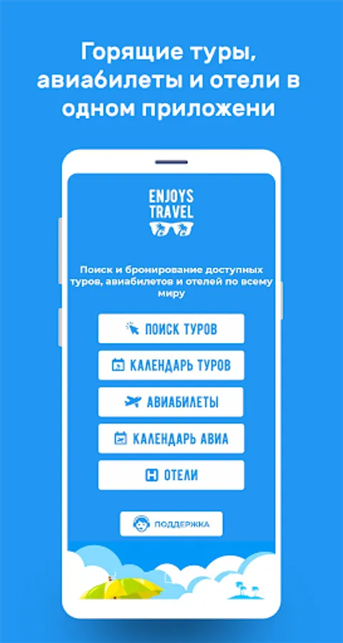 Enjoys.Travel is a convenient application for buying last-minute tours from 140 reliable tour operators, finding cheap flights from more than 800 airlines and booking hotels around the world online without a visit to the travel agency’s office.