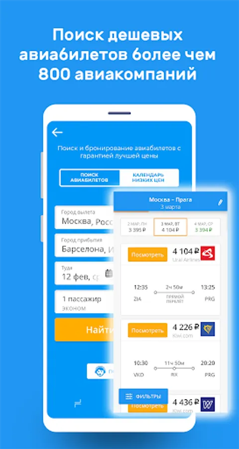 Convenient search and tracking tools for low prices will allow you to independently find and buy tickets through the application is much more profitable than in retail outlets.