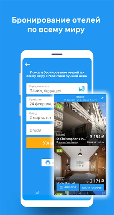 We compare room prices at more than 80 hotel booking agencies at the same time, offering to choose the most affordable one. We show the final price for the hotel. No additional taxes and hidden fees. Convenient search tools, filters and ratings based on reviews from real guests, as well as our recommendations will help you make the right choice!