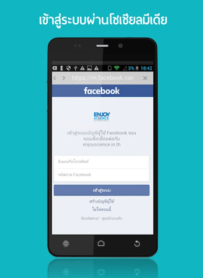 Teachers develop a digital learning resources through new ways to support learning independent access to learning when or where. Through the app functions connected with LMS (enjoyscience.in.th) users can log in via social media with ease.