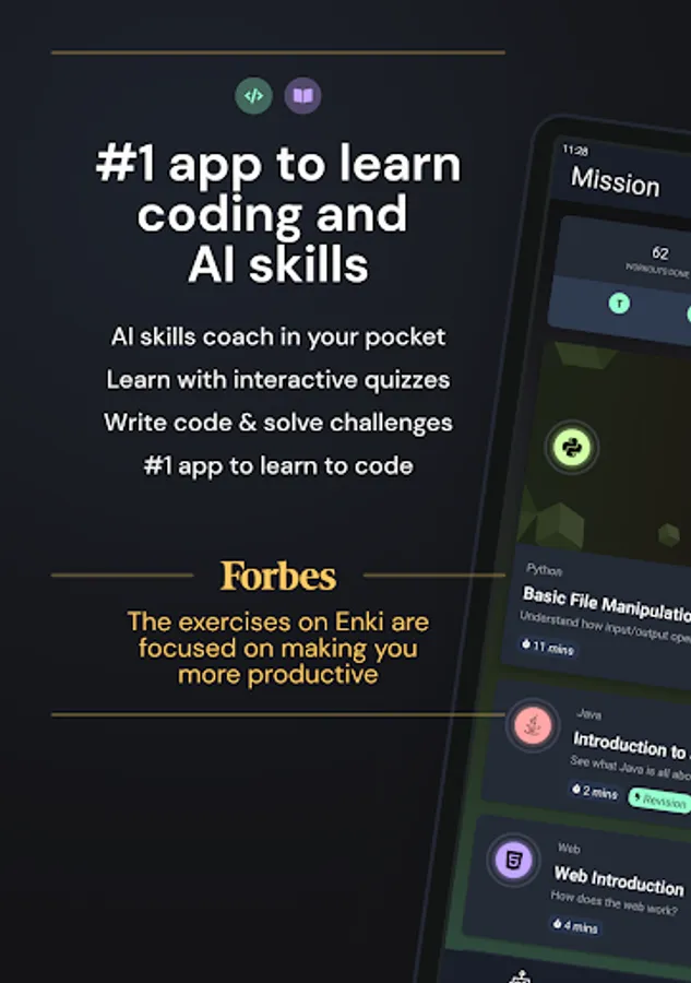"Ever imagined yourself as a JavaScript whizz, or pulling no punches with Python? Want to get a handle on SQL, or let yourself loose with Linux? Then let Enki be your coding coach, setting you daily workouts that tackle the intricacies of coding languages in bite-sized steps."
