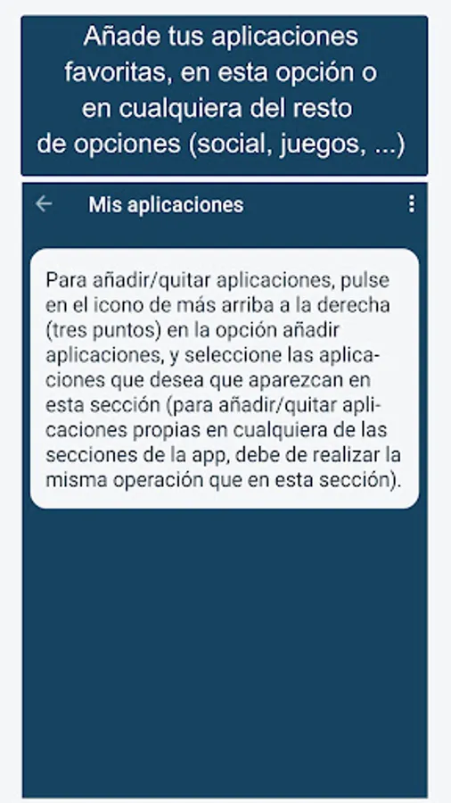 Configurable in all its sections, being able to select the options that you want to display in each section and/or add your own internal applications to said sections. With the possibility of adding external links in the My Favorites section.